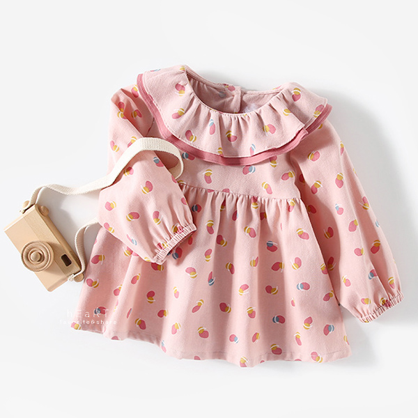 【商品特色】寬鬆連身裙穿著舒適,荷葉領可愛又好看。【商品規格】材質:100%棉,商品尺寸:90碼/100碼/110碼/120碼