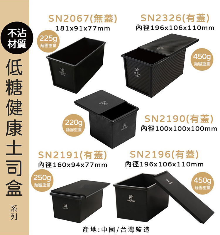 | SN2326 | 450g低糖健康波紋土司盒(1000系列不沾) | 1.0mm鋁合金 | 內徑196x106x110mm | 不沾處理 |
