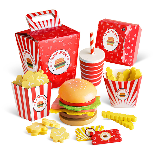 【商品特色】仿真速食扮家家酒玩具,滿足當店員或顧客的樂趣,優質厚實原木製成圓潤不傷手。【商品規格】材質:木製,包裝尺寸:22x13x13.5cm