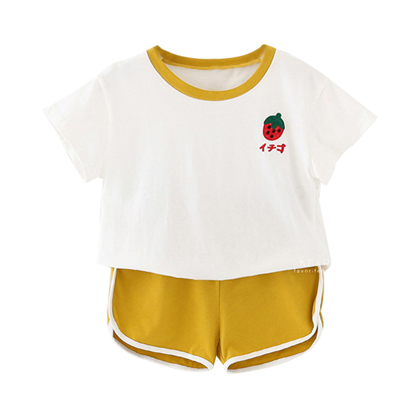 【商品特色】水果刺繡可愛運動風短袖短褲好看,布料穿著舒適涼爽。【商品規格】材質:棉混紡,商品尺寸:90碼/100碼/110碼/120碼/130碼