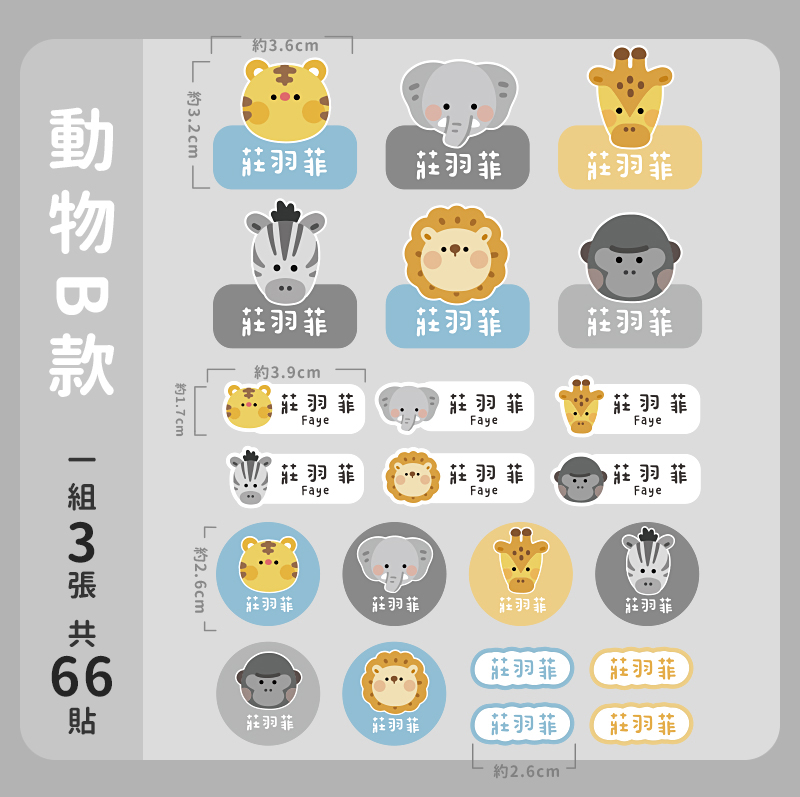 一組3大張,每張皆含不同尺寸與圖案,共66張燙印貼