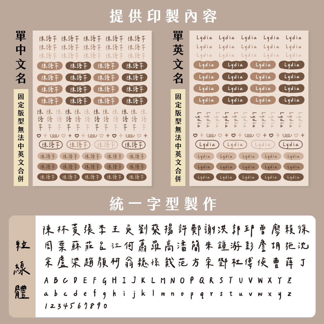 ■姓名依填寫內容製作,不再另外做確認校稿,如需看字體效果可先聯繫客服確認再下單
