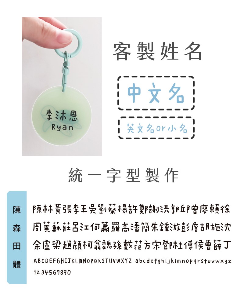 ■姓名依填寫內容製作,不再另外做確認校稿,如需看字體效果可先聯繫客服確認再下單