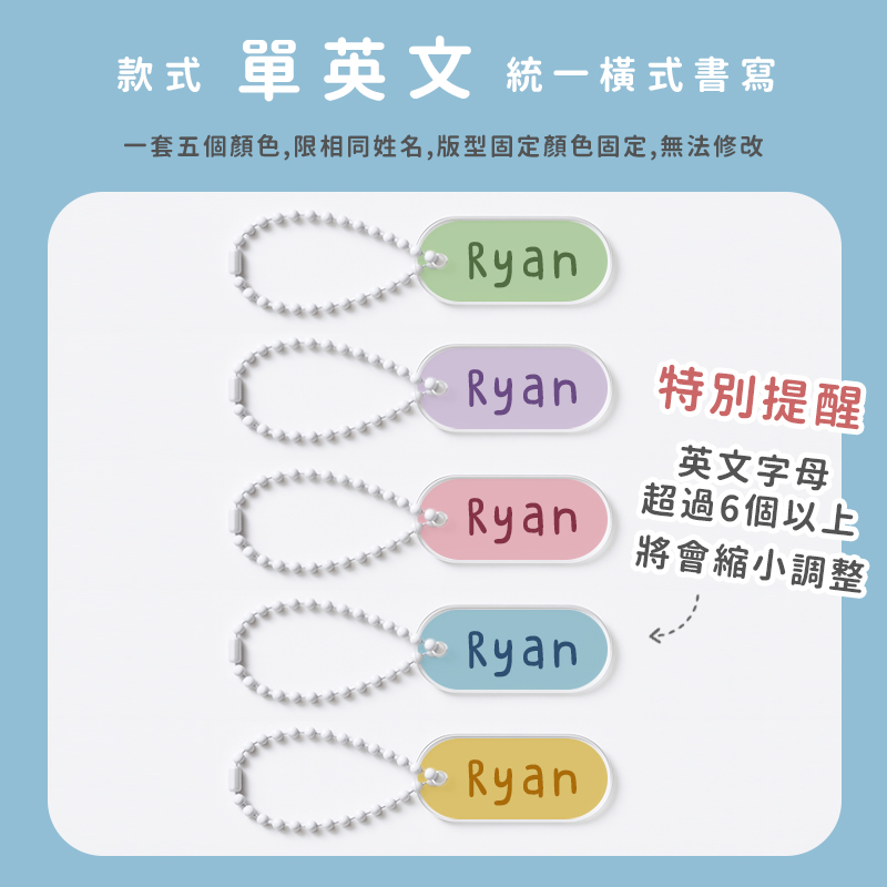 ■一套五個顏色,限相同姓名,版型固定顏色固定,無法修改
