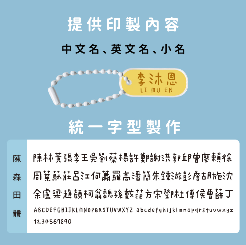 ■姓名依填寫內容製作,不再另外做確認校稿,如需看字體效果可先聯繫客服確認再下單