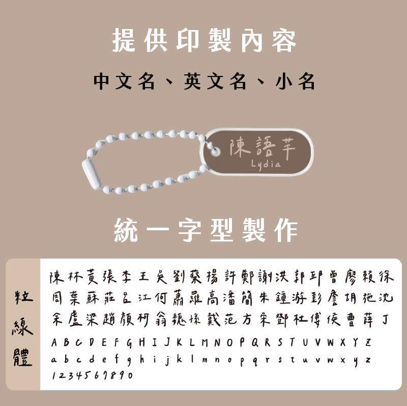 ■姓名依填寫內容製作,不再另外做確認校稿,如需看字體效果可先聯繫客服確認再下單