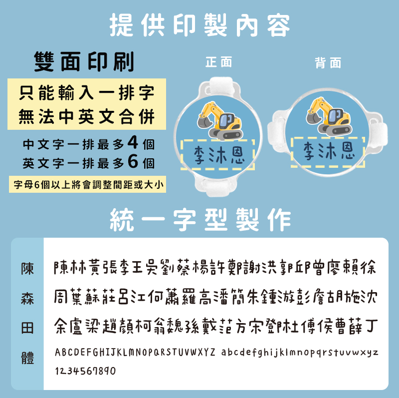 ■姓名依填寫內容製作,不再另外做確認校稿,如需看字體效果可先聯繫客服確認再下單