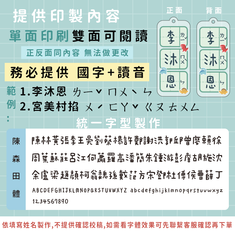 ■ 如未留言備註「注音讀音」 則以電腦輸入讀音為準印刷出貨