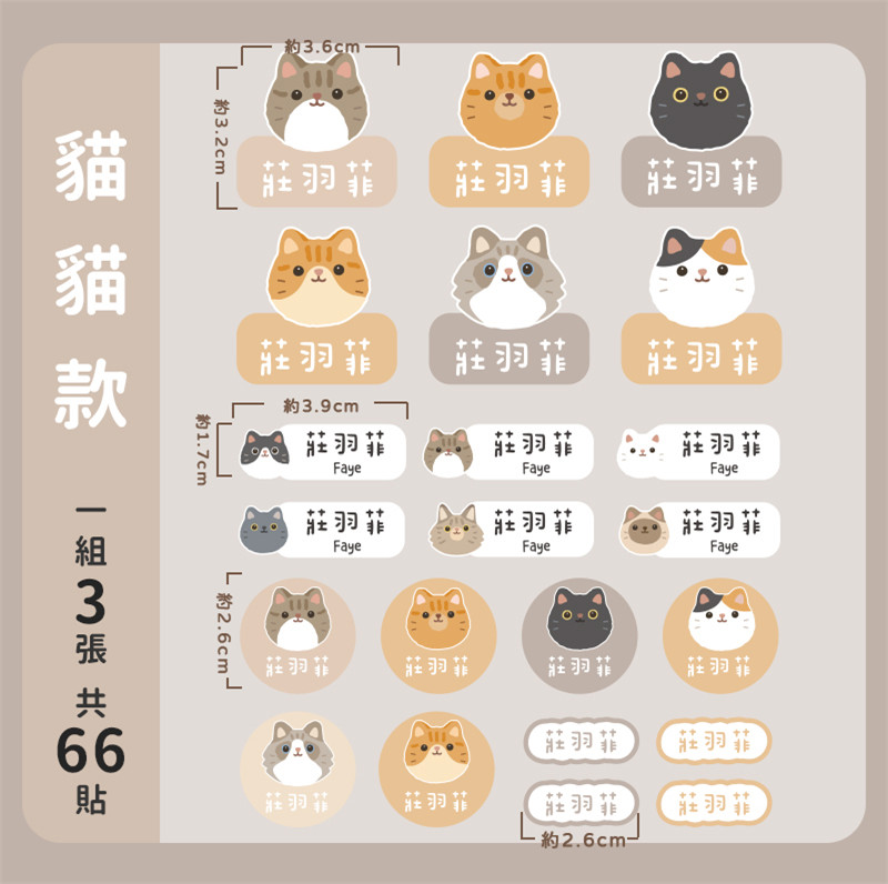 一組3大張,每張皆含不同尺寸與圖案,共66張燙印貼