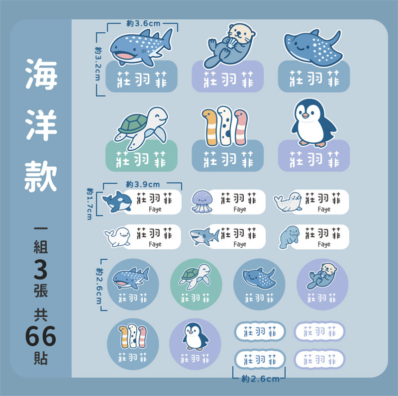 一組3大張,每張皆含不同尺寸與圖案,共66張燙印貼