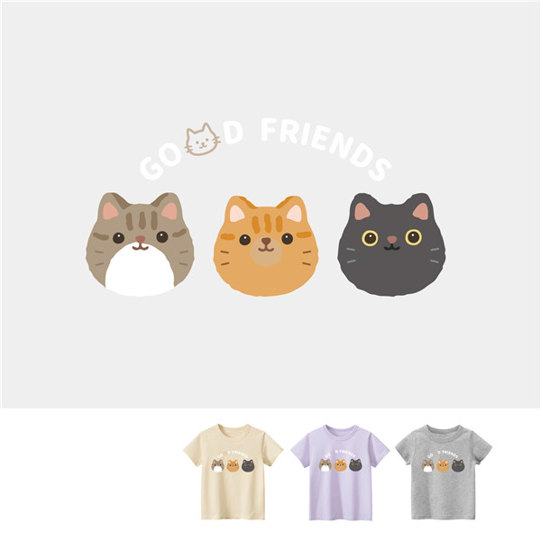 兒童|KV獨家限定款|台灣原創T短袖 貓貓好朋友A