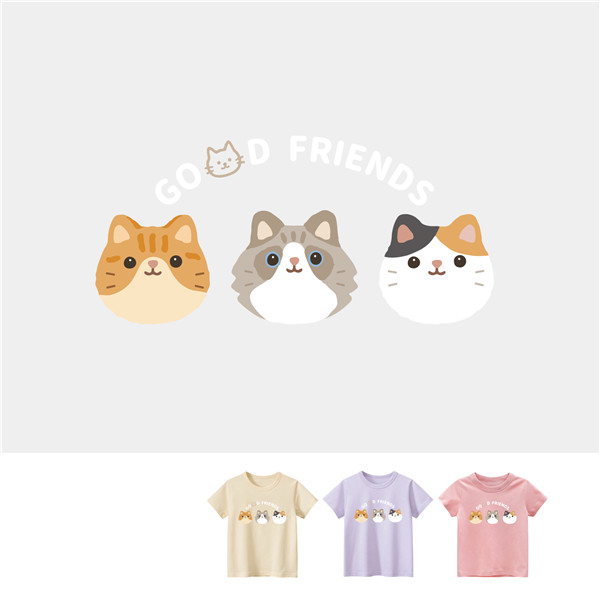 兒童|KV獨家限定款|台灣原創T短袖 貓貓好朋友B