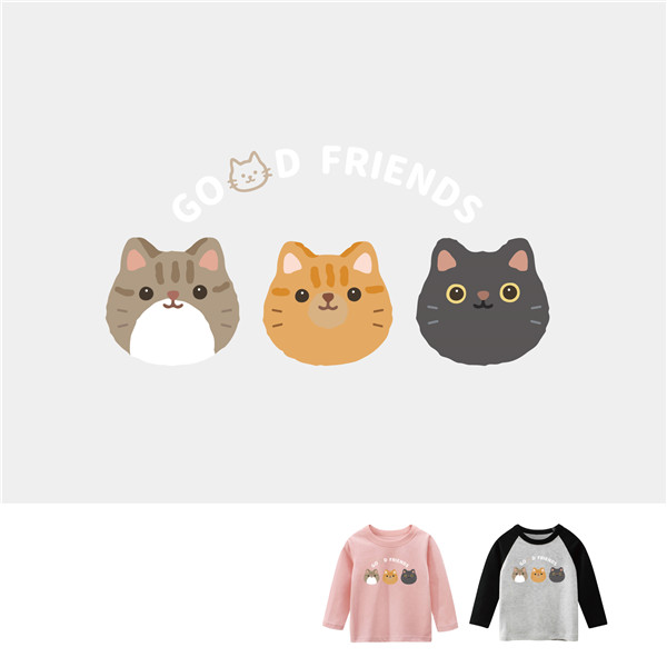 兒童|KV獨家限定款|台灣原創T長袖 貓貓好朋友A