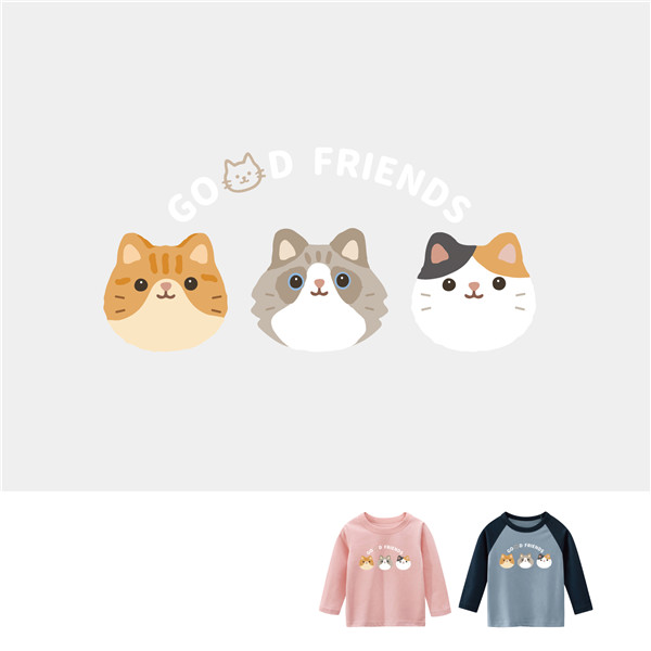 兒童|KV獨家限定款|台灣原創T長袖 貓貓好朋友B