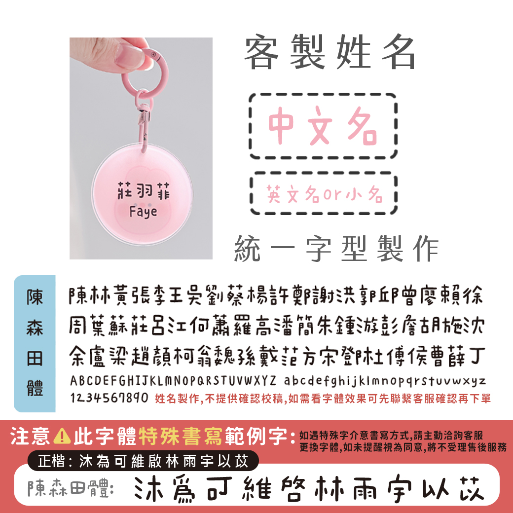 ■姓名依填寫內容製作,不再另外做確認校稿,如需看字體效果可先聯繫客服確認再下單